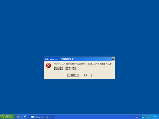 出现问题前的操作步骤:什么也不操错就报错,然后瑞星监控自动消失