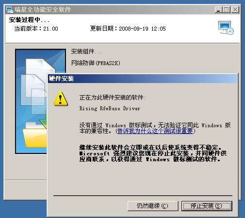 瑞星2009除了以上未通过验证的徽标外,安装正常:default6: