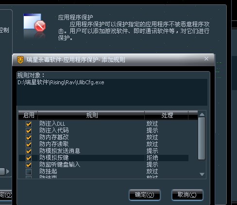 瑞星-设置-详细设置-防御设置-应用程序控制,有设置,不知道你说的是那个功能吗?