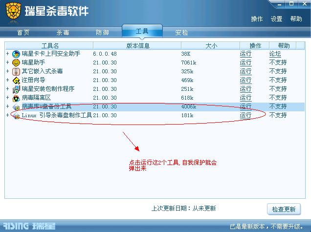 问题现象:运行U盘备份工具,引导杀毒盘制作工具,就会弹出自我保护