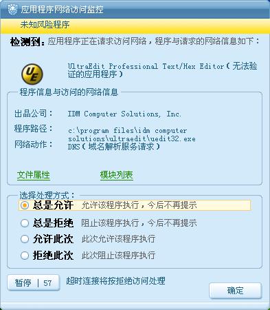 主动防御的拦截提示设置一个暂停倒计时会更好,就像防火墙提示一样.这样可以看清楚具体的可疑程序动作、路径及名子,有利于判断是否是自己想要的操作.
