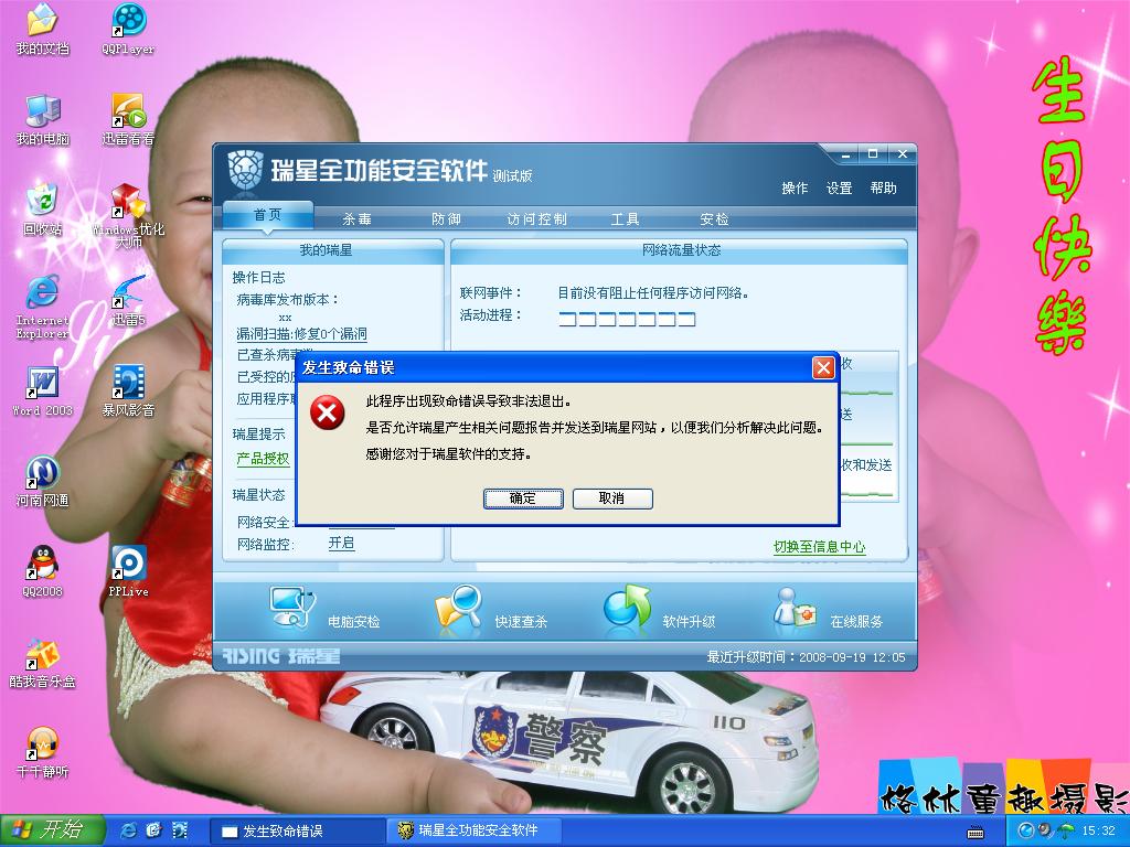 刚刚下载了“瑞星全功能安全软件2009版”安装在机子上,下面把遇到的问题反馈一下: