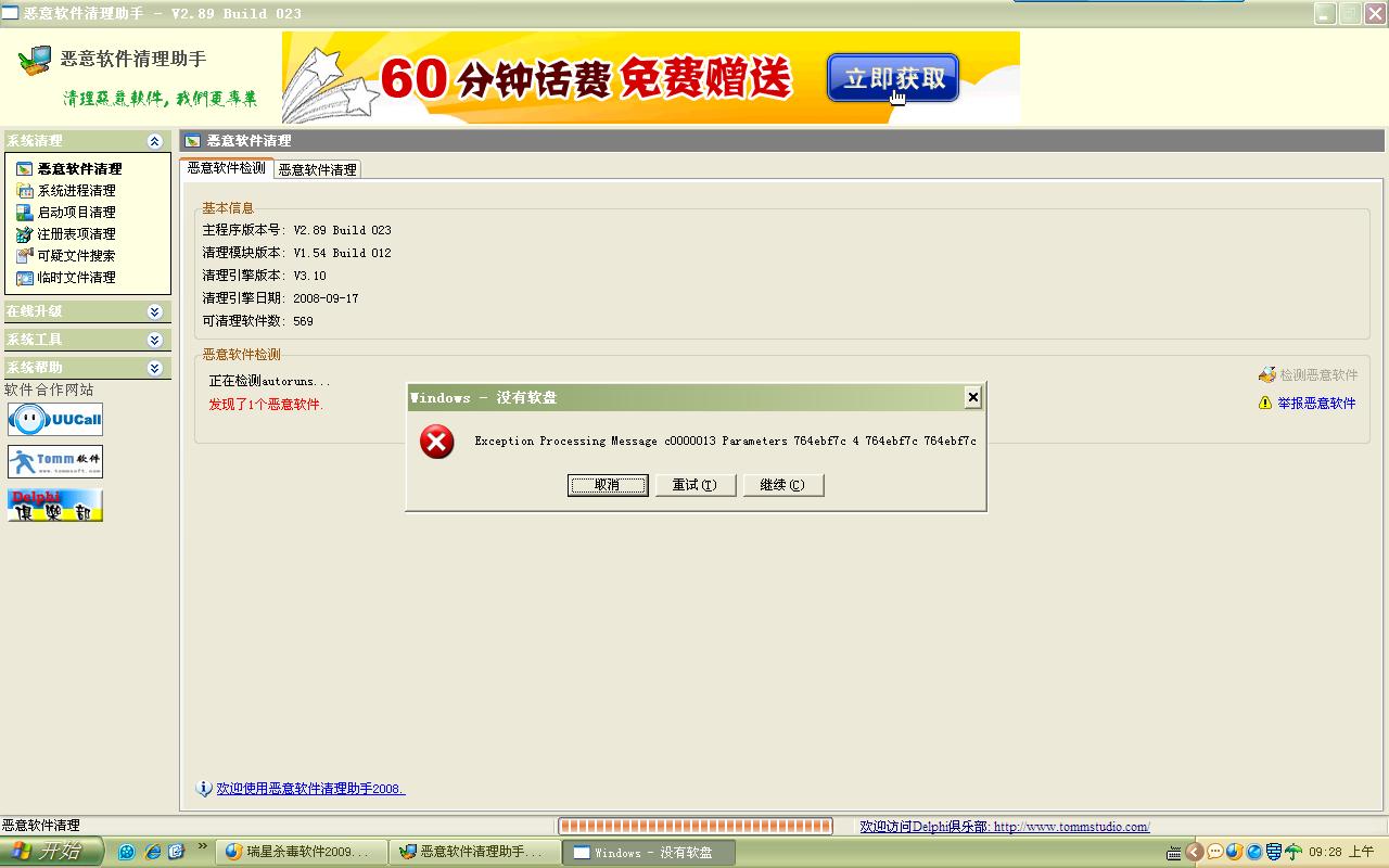 出现问题前的操作步骤:使用恶意清理助手进行扫描/关机都会出现.