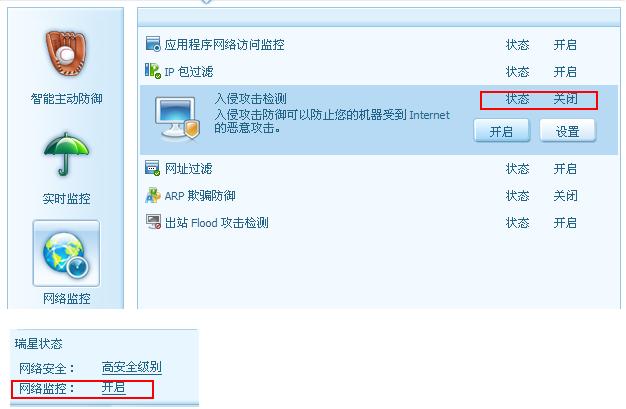 若网络监控没有全部开启,但主界面依旧显示开启。建议修改。
