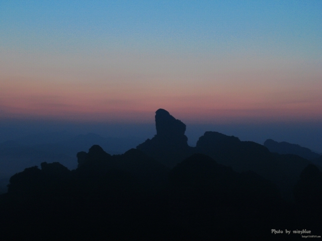 来到长老峰的入口,发现依然是好冷清。检票叔叔告诉我上山的“捷径”(其实原来只有这条路上长老峰的),虽然山路有等,但是我依然觉得好黑,心里不禁有点寒意。我一路马不停蹄地爬上长老峰,尽管肌肉酸痛,尽管上山已经超出我此时体力极限,我依然马不停蹄的爬山长老峰。经过一段漫长黑暗而又痛苦的一个人的路程后,我终于到了,到了山腰一个貌似叫观星台的地方。这里正好有4,5个人在休息。疲惫的我正庆幸找到了一个让我稍微歇息的地方。满头大汗的我跟其中两个男生搭讪。当他们知道我是一个人独自上山的,都一边用异常差异的目光打量着我,一边称赞我勇敢。他们对我一个人上山的行为感到佩服,不过只是他们不知道我的辛苦而已。当我跟他们聊了差不多一个小时后,正当我再次毅然上山时候,抬头居然见到我到目前为止最为璀璨的星空,我不知道用怎样的词语来表达如此美丽的星空,原来真正的没是没法用言语来表达的,当时我见到如此美丽的星空,真的好想好想大声的呐喊来内心无法言语的激动!无奈再次休息的5人中,有三个女生已经睡着了。不过我在内心呐喊了不知多少次来平服我激动的心情。我此时非常庆幸我有抬头仰望天空的习惯!没想到原来丹霞山的夜景也是如此的亮丽,只可惜我的相机无法留住这一刻。
