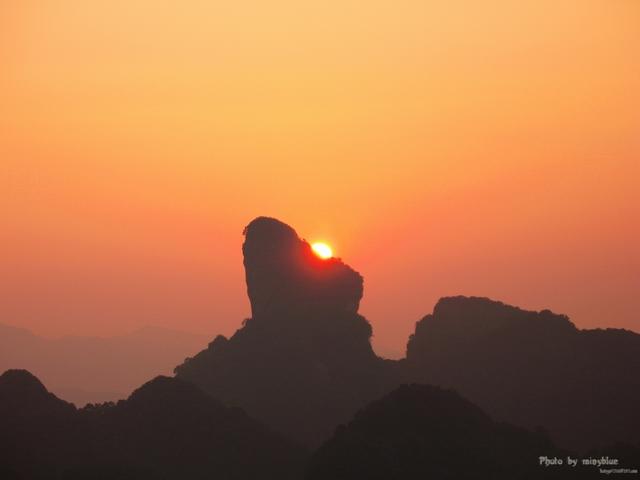 经过一晚折磨的我,看着欣赏完日出的人潮慢慢向山下涌的时候,突然觉得异常的饥饿,于是我就找了一个地方随便坐下来啃面包了,虽然面包不怎么好吃,但此时的面包是我唯一的粮食,好在昨晚没用吃太多。我开始以为这样会遭遇到别人用奇怪的目光打量,但是当我环顾了一下身边的情况之后,发现原来好多人跟我做着同样的事情。有的给我的感觉就像,一家大小在这丹霞山清晨的阳光享受着野餐的乐趣,尽管啃着几个同样不怎么好吃的包子。啃完包子之后发现原来还有好多人在等待下山,丹霞80度的铁索尽管是白天,但是依然充满危险的,一不小心可能是一群人滚下山……下山途中发觉自己原来是这么累这么困的,不过完满执行了原来睇日出的计划,虽然只有一个人睇,也不枉此次韶关之旅。睇日出可算是我这次韶关之旅只有意义,最有感触的部分!下山途中居然看到这样的景致