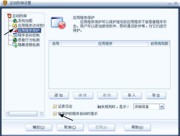 主界面-设置-防御设置-应用程序保护-勾选被保护的程序启动时提示 !