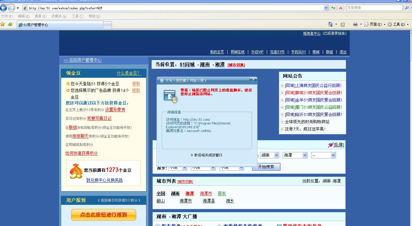 问题现象:51.com领取金豆有恶意脚本 漏洞对象名:microsoft.xmlhttp
