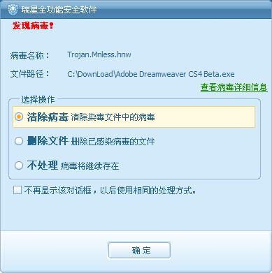 近日,自网上下载了 Adobe Acrobat 9.0 Pro 与 Dreamweaver CS4 的安装程序,瑞星全功能安全软件(RIS) 2009 Beta 对其误报,以下是截图: