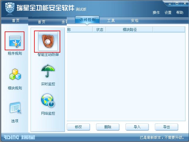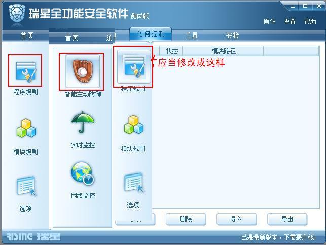 防御里,当选择智能主动防御时,下面是有玻璃质感的方形图案。而访问控制里没有,无法知道当前选择的是哪个选项。。。工程师明白了否?