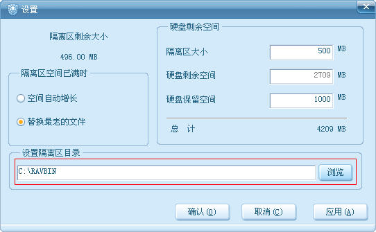 09版病毒隔离区设置中可以自定义隔离区目录路径