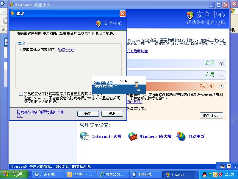 问题现象:ris不能在winxp安全中心里显示出来