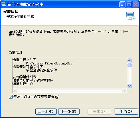 10、内存病毒查杀结束,点击“下一步”继续安装