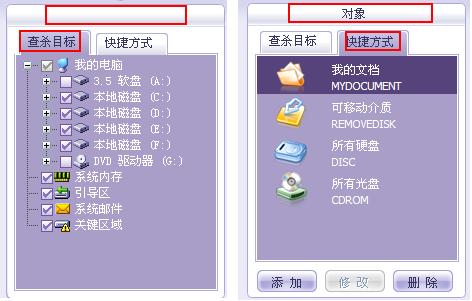新皮肤存在BUG,点击“查杀目标”与“快捷方式”,前者无“对象”后者有“对象”