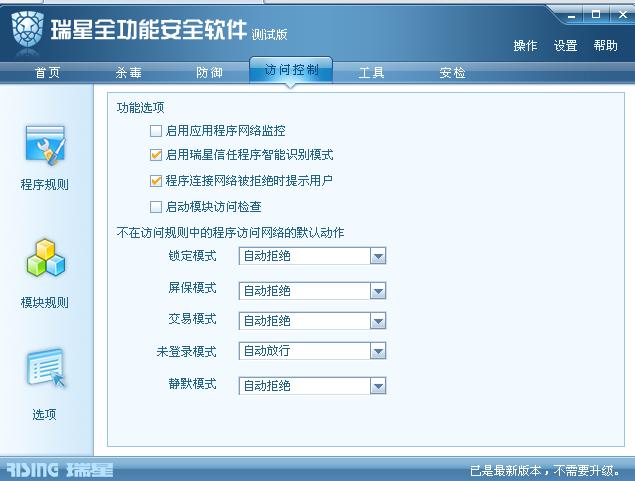 打开全功能软件版首页,可以看到网络安全的级别设置。