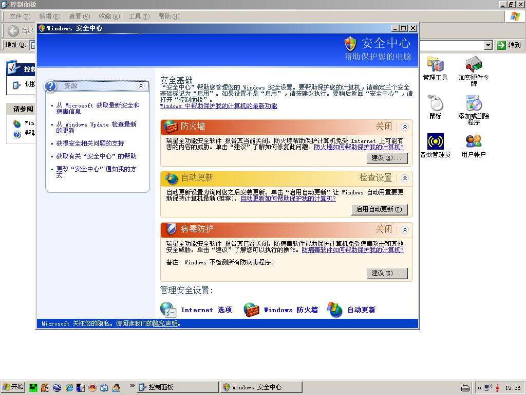 微软安全中心检测有时不是很准确,建议以瑞星软件系统托盘图标为依据来监测瑞星软件工作状态。