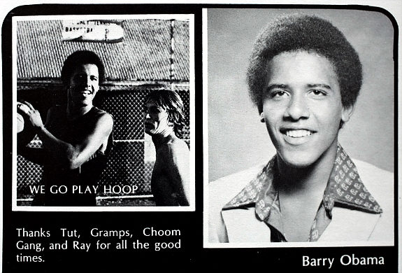 奥巴马在火鲁奴奴的普纳侯(Punahou)上的高中。这张照片是从高年级年册上拷贝下来的。