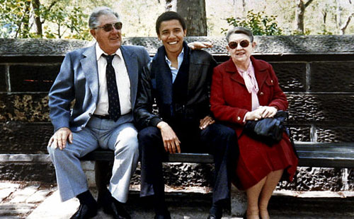 奥巴马1979年从高中毕业。照片上是祖父母史丹利.艾莫尔.达勒姆(Stanley Armour Dunham )和玛德琳.佩恩(Madelyn Payne)