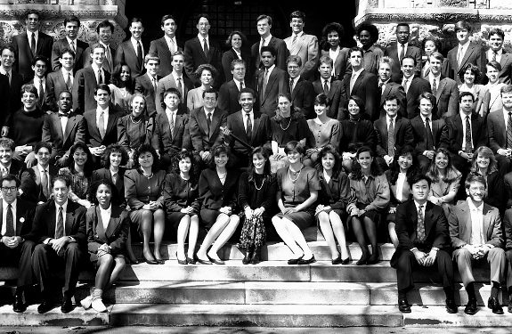 这张照片是哈佛法学评论编辑在1990到1991学年的合影。奥巴马居中。