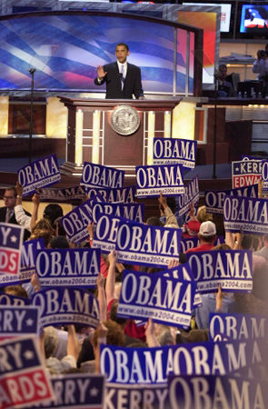 奥巴马在2004年民主党集会上发表政策演讲。这次演讲让还是州议员的奥巴马成为全国皆知的人物。一些学者开始把他当成未来的美国总统的候选人。