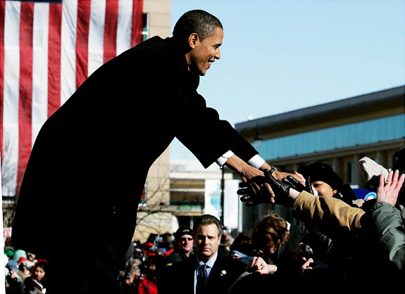 2007年2月10日,在伊利诺斯斯普林菲尔德古老的市政大厅前,奥巴马宣布自己角逐2008年民主党总统候选人提名。