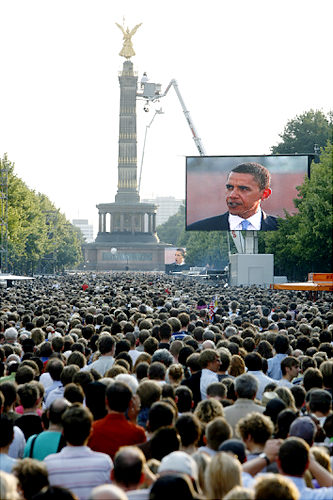 7月24日,奥巴马对200000人发表演讲。是竞选中人数最多的一次。这也是唯一一次在美国之外的演讲,地点是柏林。