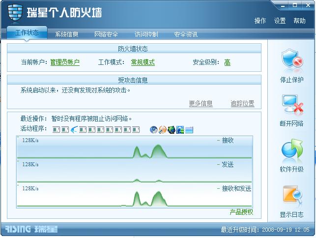 版本:就是现在正在测试的09瑞星防火墙,我也是从这个论坛下载安装的~今天刚安的~
