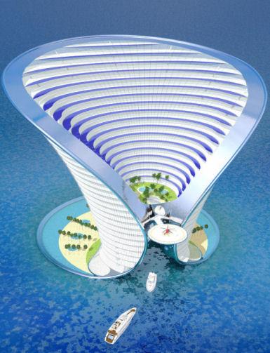 可飞行的明日豪华酒店指的就是Aeroscraft,它是一艘重400吨的巨型软式飞艇,可用于搭载乘客,其内部空间巨大,相关设施也与豪华班机不相上下。这座飞行酒店的个头相当于两个足球场,依靠1400万立方英尺(约合39.6万立方米)氦气、巨型氢燃料电池提供动力的推进器以及6个涡轮喷气发动机在空中漂浮和飞行。它能够容纳250名乘客,飞行高度可达到8000英尺(约合2438米)。除了让乘客体验飞行的快乐外,Aeroscraft还为他们准备了贵宾包房、赌场、饭馆和特等包房,让他们尽情享受高科技带来的乐趣。