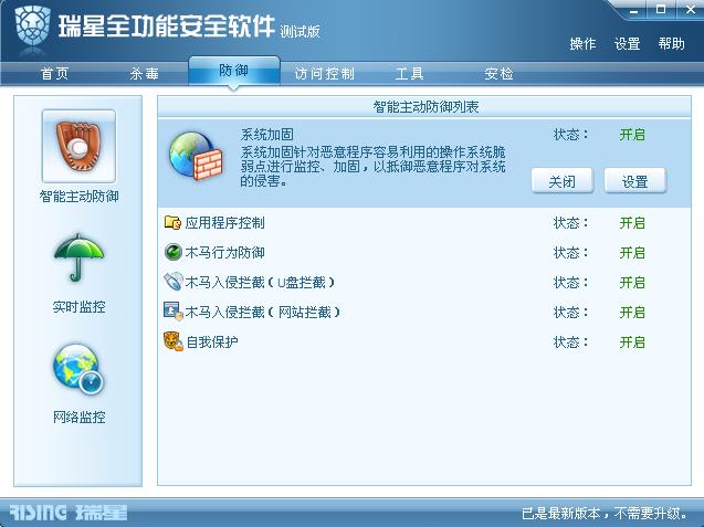 一是我对瑞星的喜爱,我一直以来用的都是瑞星,没别的原因只因好使,至今我还从未遇到过大毒我的系统都用了快一年了,还没出问题呢。首先谢谢瑞星!!