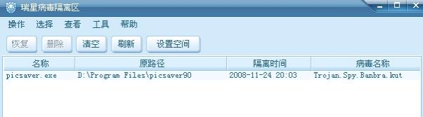问题现象:网页图片保存能手9.0的主文件“picsaver.exe”被当做病毒删除
