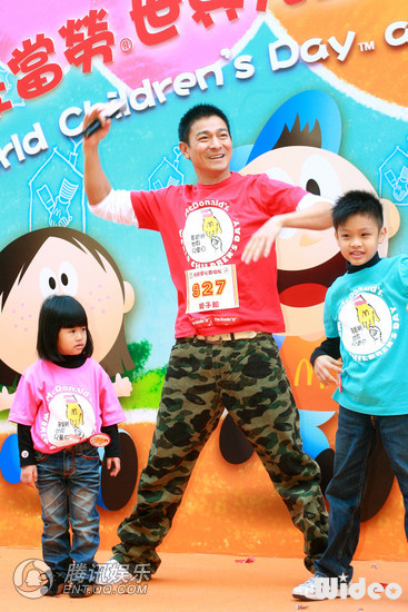 组图:刘德华带领小朋友卖力做操 称反对裁员