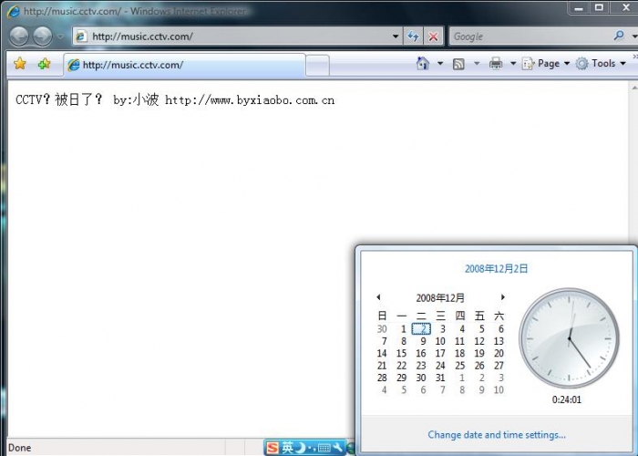 胆子不小啊,挂马到是没什么,居然敢修改CCTV的网页而且还留名,这个黑客是不是脑袋进水了?只要这黑客还在中国,等着坐牢吧!