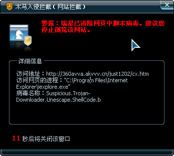 楼主,我刚点击了你报的网站,瑞星报了啊?