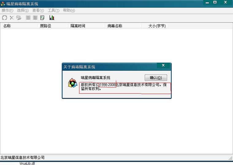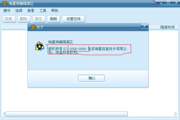 瑞星在线杀毒的病毒隔离系统的关于瑞星都是1998-2008。