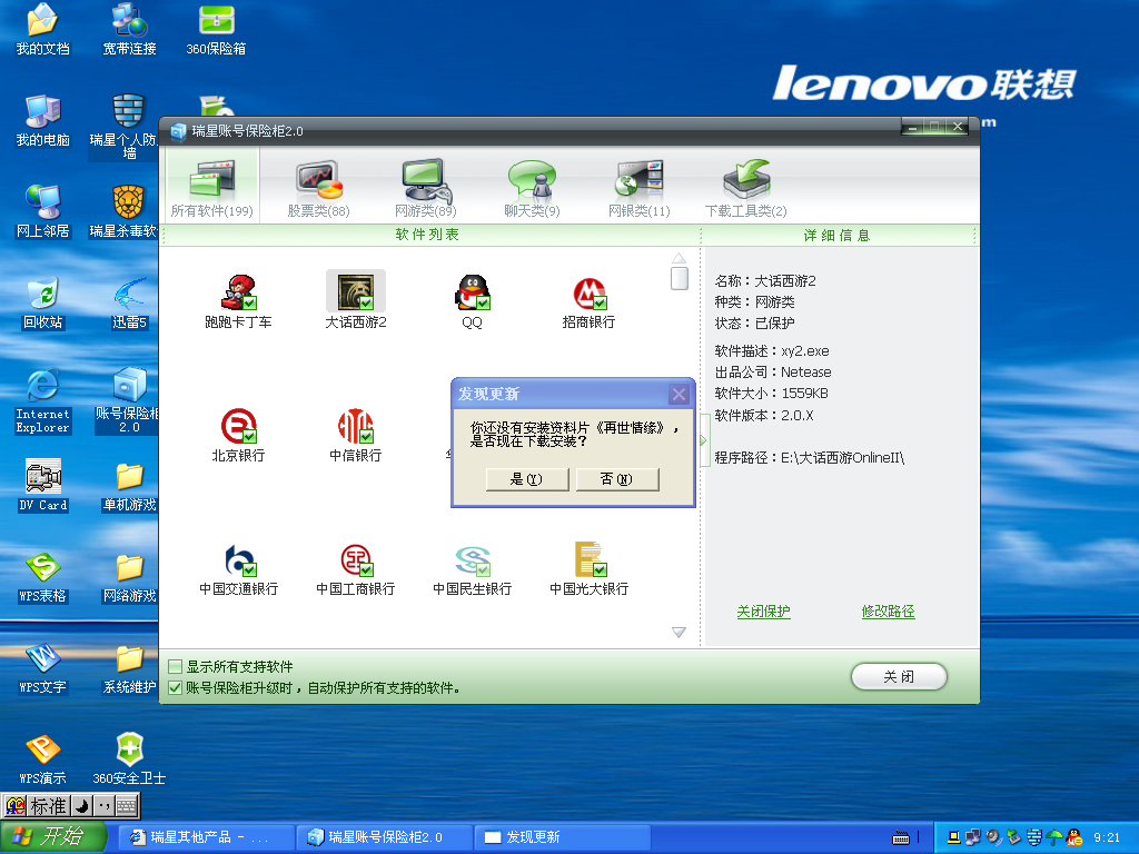 虽然没玩过,但是再世情缘貌似是大话西游的资料片吧?如果加入帐号保险柜,最好应该是两个主程序都加入进去。