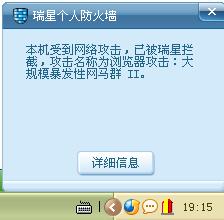 这是我今天无意访问一个被挂马的网站,发现我的电脑居然被穿透了,瑞星2009没防住.