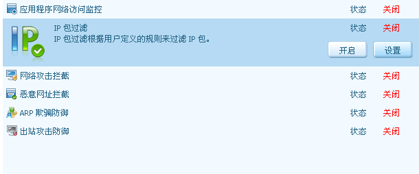我用的是英文版2009防火墙,请问关闭IP包过滤在哪设置呢?