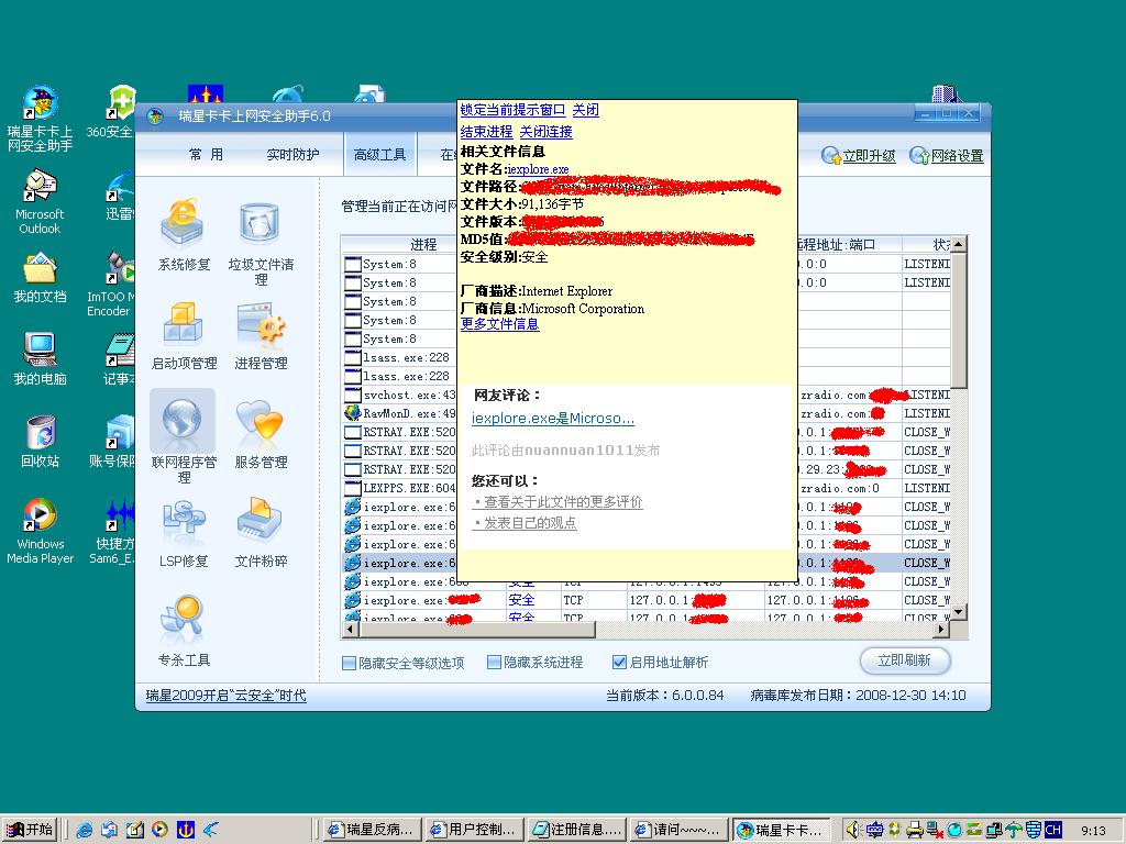 请问楼主对安全的需求是怎样的,另外,是否安装了其他同类的安全辅助软件?