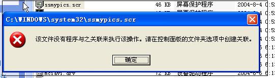 我将C:\WINDOWS\system32\ssmypics.scr设为基本用户,创建它的快捷方式到E:\广寒宫\不受限。将 E:\广寒宫\不受限\设为不受限。双击C:\WINDOWS\system32\ssmypics.scr,提示如下,不能运行。