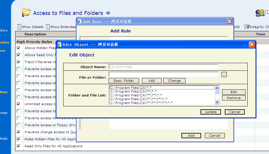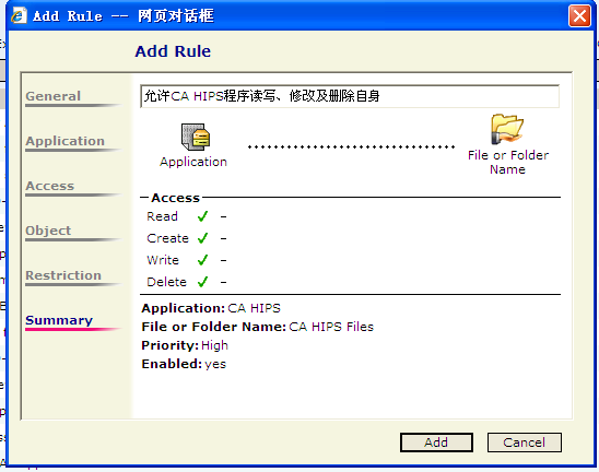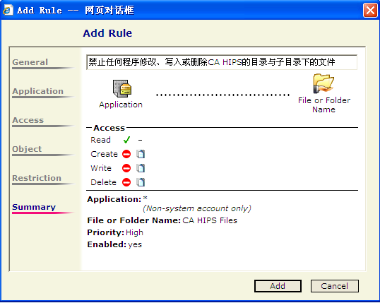 禁止任何程序修改、写入或删除CA HIPS的目录与子目录下的文件