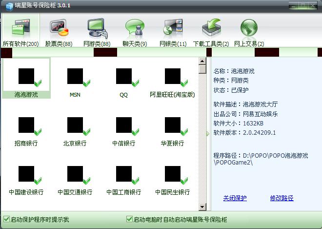 气泡通知是要设置的`点开瑞星帐号保险箱 右下角 "启动保护程序时提示我:里面打勾