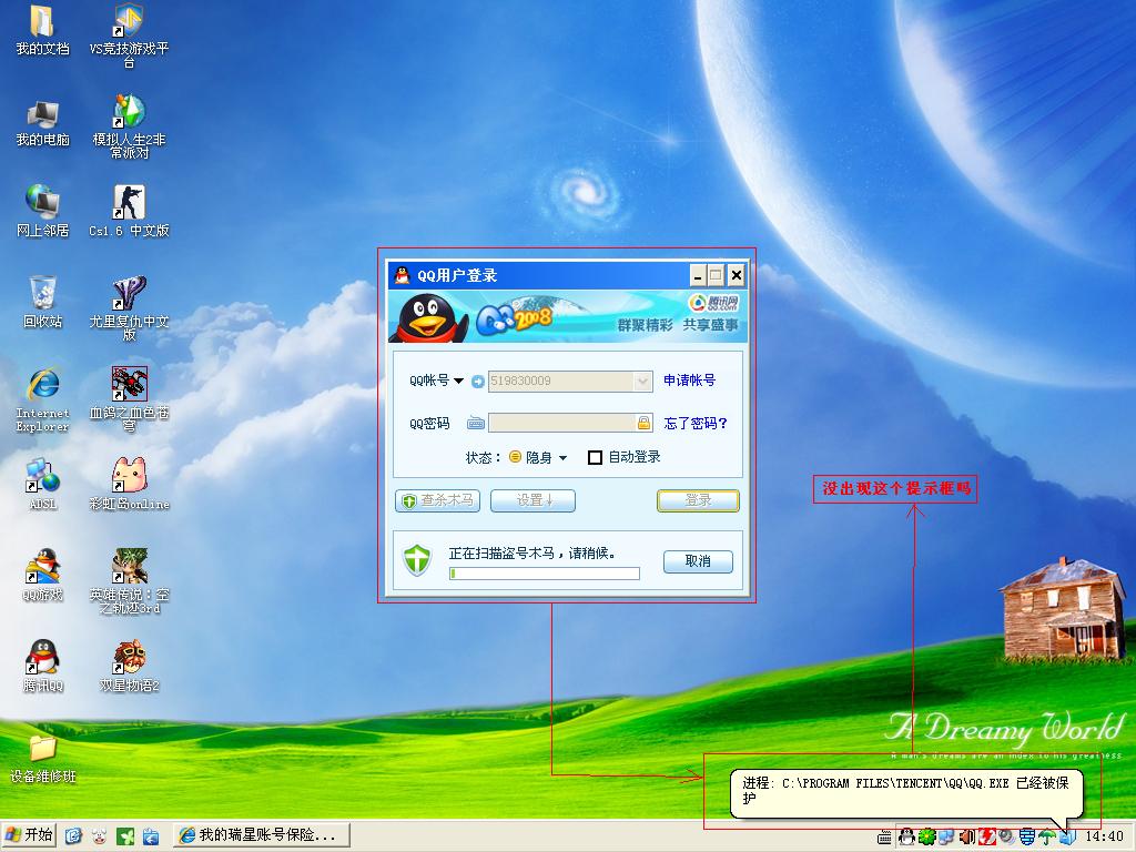 现在显示QQ保护中,但QQ登陆时也没有以前的气泡提示了。不知道是不是真的在保护中???:default21: