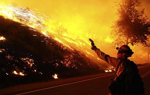 33.October 12, 2008. 洛杉矶北 32 公里 , 消防队员使用照明弹制造回火