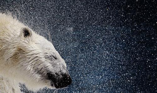 35.March 6, 2008. 魁北克圣费利西安野生动物园的北极熊从头上把水摇去