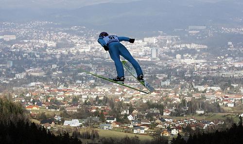 39.February 9, 2008. 捷克贝雷茨的滑雪世界杯中 , 芬兰的 Harri Olli 划过长空