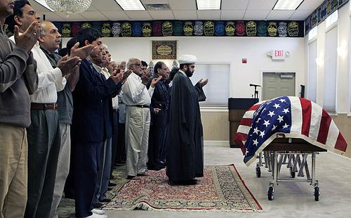 1.Sept. 22, 2008. 教长哈希姆拉扎带领葬礼中的祈祷 , 死者是 Mohsin Naqvi, 巴勒斯坦生的穆斯林 ,8 岁时全家移民美国 , 后来成为军官 , 死于阿富汗路边巡逻