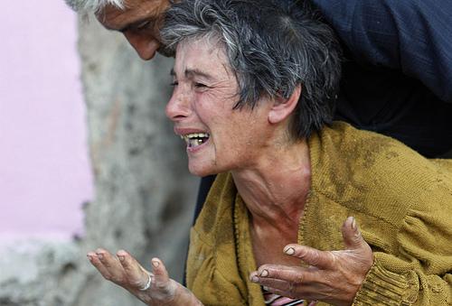 15.August 11, 2008. 一名格鲁吉亚女子被丈夫安慰 , 她的孩子在格鲁吉亚第比利斯附近的格里周边村庄被杀