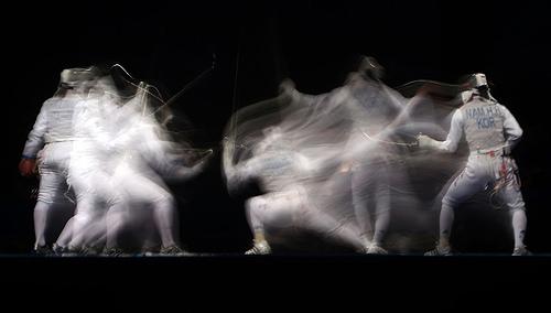 18.August 11, 2008. 女子个人花剑赛第三天意大利的 Giovanna Trillini 与韩国的 Nam Hyunhee