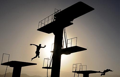 22.June 24, 2008. 阿富汗青年在喀布尔跳入游泳池 , 当地气温接近 30 摄氏度