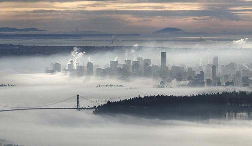 27.November 17, 2008. 晨雾中的温哥华市中心和狮门大桥